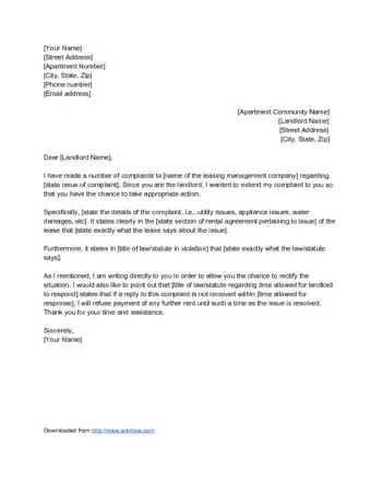 - As discussed below, your letter should explain the problem that you are having and request the landlord’s assistance in correcting the problem.