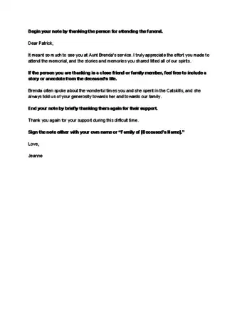 - If you are especially close to the person you’re thanking, feel free to include a personal anecdote or story from the deceased’s life, if you share one with whomever you’re thanking. Personalizing your thank you notes is always a nice touch, but certainly don’t feel that you must do this.