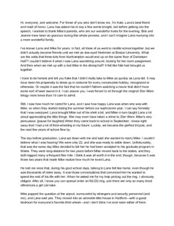 - Funny stories might include a funny story about the bride and groom's meeting, or an anecdote about one of them as a child.