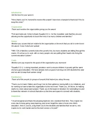 - For example, if you're receiving an award for your volunteer work, try searching “volunteer award acceptance speeches” in a search engine. If you're referencing speeches in a physical book, try to find a book that has the speeches organized by award type.