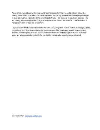 4Keep it short, sweet, and to the point. Your artist statement is an introduction to your work, not an in-depth analysis of it. Your artist’s statement should be one to two paragraphs and no longer than a page.[5]