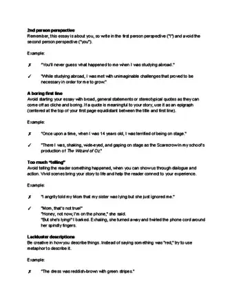 - Do not use the second person perspective (“you”) or switch back and forth between “I” and “you.” Use the first person perspective (“I”) throughout your entire essay.
