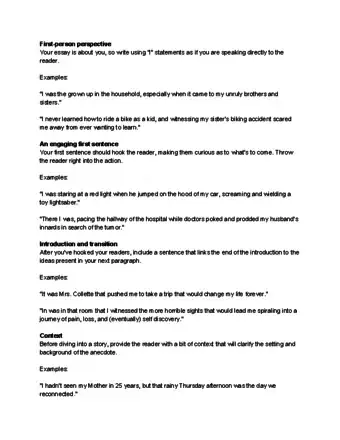 - Say something tantalizing to your reader. For example, you might start with something like, "I never expected to be as happy as I was on that day." Or, "Many things have happened to me in my life, but this was the worst.” Just make sure that the opening fits with your topic.