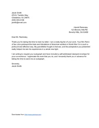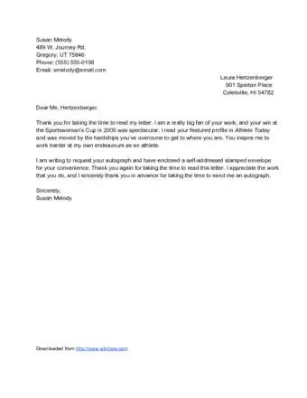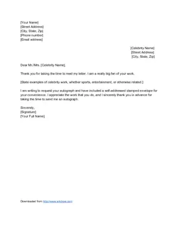- A body paragraph that states why you are a fan of the celebrity and what an autograph will mean to you.
