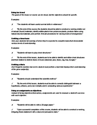 Sample Objectives and Things to Include and Avoid