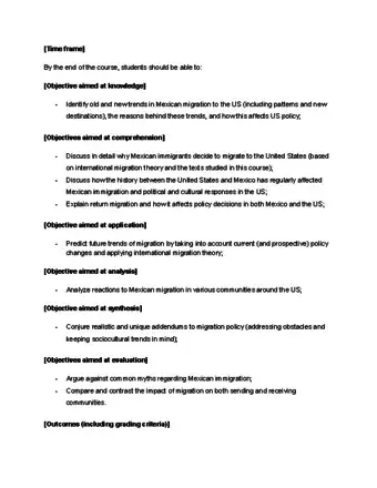 Community AnswerA good command of the material being taught. They include measurable verbs and criteria for acceptable performance. For example: By the end of the semester, the students will able to identify 3 [xxx]. -