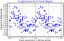 A light curve for FT Canis Majoris from Hipparcos data, adapted from Lefèvre et al. (2009)[1]