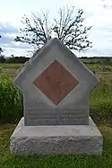 The 17th was joining a corps that had suffered heavily at Second Bull Run. It was so severely understrength that during the Maryland Campaign in September 1862, it had remained in Washington DC to rest and refit. The 17th was one of the units joining it to bring it up to strength. On Saturday, October 11, the 17th crossed over the Potomac into Maryland over Chain bridge, and arrived two days later near Edward's Ferry on the Potomac in Poolesville, MD. The men saw the red diamond patch proudly worn by their veterans comrades and soon found new troops were not allowed them until proof of worthiness in battle was shown.[8] While there, it found itself chronically short of rations and started foraging around local farms.[9] This period at the ferry was spent drilling, as well as picketing, fatigue, and guard duty which included guarding a six-mile section of the Chesapeake and Ohio Canal; this duty, although mounted in two-day stints, allowed the men to forage, in disobedience of orders, upon local secessionist farmers.[10]