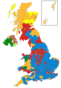 Colours denote the winning party, as shown in the main table of results.