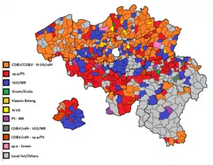 Most coalitions before the elections can continue with a stronger backing, most notably in Ghent and Mechelen. An exception to this general 'rule' is Vilvoorde, where former prime minister Jean-Luc Dehaene loses his majority.