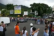 Many voters abstained in the vote, rather than cast a "No" vote against Chávez.[7][8] The student movement played a crucial role in consolidating this position[9] and in organizing numerous rallies.[4][10] The student movement has played a large role in the Venezuelan political process, having gained a prominent position during the RCTV broadcast license expiration protests.[11] Although the student movement is not limited to the opposition,[12] it has been the opposition students that have gained the largest support, in part because they are not officially affiliated with any political cadres.[7]