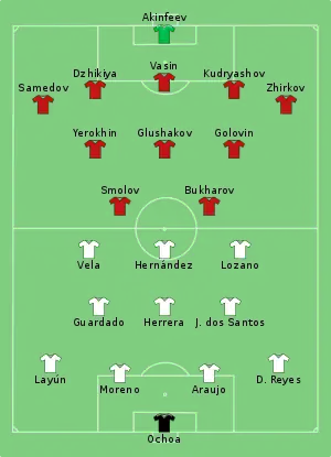 - 1 2 "Tactical Line-up – Group A – Mexico-Russia" (PDF). FIFA.com. Fédération Internationale de Football Association. 24 June 2017. Archived from the original (PDF) on 12 July 2017. Retrieved 24 June 2017.
