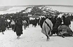 On the evening of 17 January 1943, the Alpine Army Corps commander, General Gabriele Nasci, ordered a full retreat. At this point only the 2nd Alpine Division "Tridentina" was still capable of conducting combat operations. The 40,000-strong mass of stragglers — Alpini and Italians from other commands, plus German and Hungarians — followed the Tridentina division, which led the way westwards to the Axis lines. As the Soviets had already occupied every village bitter battles had to be fought to clear the way. By morning of 28 January the Julia had walked 200 km, fought 20 battles, and spent 11 nights camped out in the middle of the Russian Steppe. Temperatures during the nights were between -30 °C and -40 °C. On 1 February 1943 the remnants of the Alpine Army Corps reached Axis lines. The Julia suffered heavy losses in the breakout: less than a tenth of the division survived (approximately 1,200 survivors of 18,000 troops deployed).[16][20][21][22]