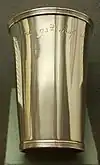 Silver Communion Plate and Chalce, inscibed "Church 93rd Regt Sutherland Highlanders, Cape1813". Both pieces were purchased in South Africa by the ordinary soldiers of the 93rd. They were used during the Communion service to distribute bread and wine. Originally the chalice had a lid but this was lost during the Second World War. Both the plate and chalice were continued to be used by the Regiment up until the late 20th century when copies were made and the original communion set given over to The Argyll and Sutherland Highlanders Regimental Museum. The copies were then used during Regimental Kirk service.