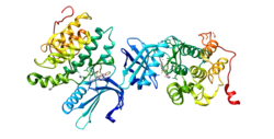 Adaptor-associated protein kinase 1 also known as AP2-associated protein kinase 1 is an enzyme that in humans is encoded by the AAK1 gene[5][6][7] and is involved in clathrin mediated endocytosis. Alternatively spliced transcript variants have been described, but their biological validity has not been determined.[7]