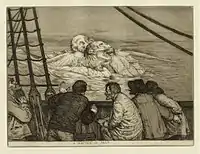 When the sea is quiet again, the three journalists discuss how they can present this astonishing fact to the public. The Dutch journalist, Zuyland, determines to treat the matter in cool scientific fashion, “giving approximate lengths and breadths, and the whole list of the crew whom he had sworn on oath to testify to his facts”.[1]: 137 However, both he and Kipling soon discard their accounts, realising that their story will never be credited as a simple fact. The American journalist, Keller, also realises the futility of presenting such a story to the cynical public, and in the end Kipling tells them he will print the story as a piece of fiction, where it will get a better reception. Truth, he says, “is a naked lady, and if by accident she is drawn up from the bottom of the sea, it behoves a gentleman either to give her a print petticoat or to turn his back and vow that he did not see”.[1]: 141