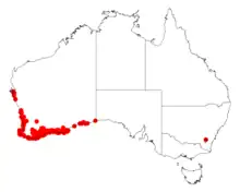 A. cochlearis grows in sandy soils and is found in coastal areas on sandplains and sand dunes.[2] It grows in coastal areas from Lancelin to Israelite Bay, where it is found growing as solitary plants or in dense thickets.[5]
