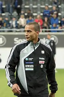 Valencia has also played futsal, and was included in Norwegian national futsal team's first squad in 2003, along with other Tippeligaen players like Kristofer Hæstad, Fredrik Strømstad and Espen Edvardsen.[14] Valencia scored one of the goals in the 7–5 victory against Canada in the 2003 Futsal World Cup, which was Norway's first victory in an international futsal tournament.[15]
