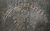 In 1849 the firm of James & William Stewart at 65 Nicolson Street, Edinburgh was taken over and Thomas was put in charge of the business, trading under the name Thomas A. Mathieson & Co. as plane and edge-tool makers.[7] Thomas's company acquired the Edinburgh edge-tool makers Charles & Hugh McPherson and took over their premises in Gilmore Street.[8] In the Edinburgh directory of 1856/7 the business is recorded as being Alexander Mathieson & Son, plane and edge-tool makers at 48 Nicolson Street and at Paul's Work, Gilmore Street.[9]