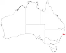 This she-oak is only known from near Myall Lakes, where it grows in sandy heath, shrubland and open woodland between Booti Booti National Park and Nabiac in eastern New South Wales.[3][5][6]