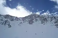 Alta is a ski area in the western United States, located in the town of Alta in the Wasatch Mountains of Utah, in Salt Lake County. With a skiable area of 2,614 acres (10.58 km2), Alta's base elevation is 8,530 ft (2,600 m) and rises to 11,068 ft (3,374 m) for a vertical gain of 2,538 ft (774 m). One of the oldest ski resorts in the country, it opened its first lift in early 1939.[2] Alta is known for receiving more snow than most Utah resorts,[3] with an average annual snowfall of 545 inches (13.8 m).[4] It is also regularly ranked as having the best snow in North America.[5][6][7] Alta is one of three remaining ski resorts in the U.S. that prohibits snowboarders, along with nearby competitor Deer Valley and Vermont's Mad River Glen.[8]