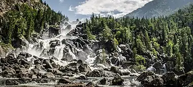 - Cordon Chelyush - Waterfall. Softwood forest, overviews of Altai. (website (in Russian))