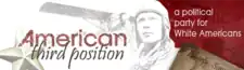 The American Freedom Party (formerly the American Third Position Party or A3P) is a political party in the United States that promotes white nationalism.[2][3][4][5] In November 2009, it filed papers to be on a ballot in California, and was launched in January 2010.[6] According to the Southern Poverty Law Center, it was created to channel the right-wing populist resentment engendered by the financial crisis of 2007–2010 and the policies of the Obama administration.[7]