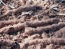 | Dry twigs covered with soil by feeding activities of encrusting termites, Gnathamitermis perplexus in the Sonoran Desert, Arizona | |