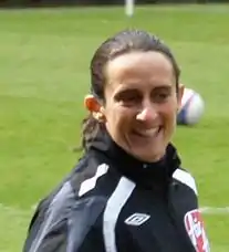 Amy Elizabeth Fearn[1] MBE (née Rayner; born 20 November 1977) is an English football referee from Loughborough, Leicestershire, who in 2010 became the first woman to referee in The Football League.[2] With a degree in economics and a full-time career in accountancy, having also refereed football since age 14, she became only the second woman after Wendy Toms to rise to the position of assistant referee in English professional football. On 9 February 2010, she became the first woman to act as the main referee in a Football League match.[3]