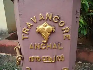 Anchal post was the early postal service started in the kingdom of Travancore and Cochin before Independence of India. It was started in Travancore in 1729 by Anizham thirunal Marthandavarma and later in Cochin in 1770s. Later it was merged with the India Posts & Telegraph on 1 April 1951 after Independence of India.[1][2][3][4][5]