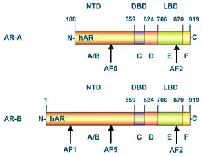 Two isoforms of the androgen receptor (A and B) have been identified:[46]