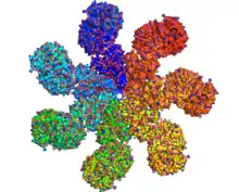 - ↑ S. Qi; Y. Pang; Q. Hu; Q. Liu; H. Li; Y. Zhou; T. He; Q. Liang; Y. Liu; X. Yuan; G. Luo; H. Li; J. Wang; N. Yan; Y. Shi (2010). "Crystal structure of the Caenorhabditis elegans apoptosome reveals an octameric assembly of CED-4". Cell. 141 (3): 446–457. doi:10.1016/j.cell.2010.03.017. PMID 20434985.