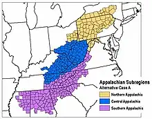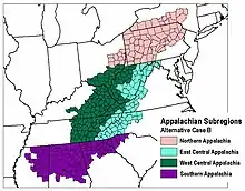 - ↑ "Subregions in Appalachia - Appalachian Regional Commission".