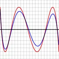 ![]() Error between optimal polynomial and exp(x) (red), and Chebyshev approximation and exp(x) (blue) over the interval [−1, 1]. Vertical divisions are 10−4. Maximum error for the optimal polynomial is 5.47 × 10−4. |