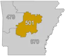 | West: 479 | area code 501 | East: 870 |