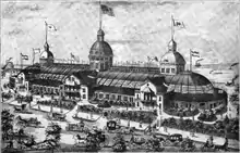 The Art Institute of Chicago opened as the Chicago Academy of Fine Arts on May 24, 1879, and changed to its current name on December 23, 1882.[5] It was originally established as both a school and museum, and stood on the southwest corner of Michigan Avenue and Monroe Street,[6] where it rented space.[7] Before taking over its current building it occupied a four-story Romanesque building designed by Burnham & Root at 81 East Van Buren Street, where the Chicago Club is now situated.[8][9] The Art Institute, which moved there at the time it changed names, originally leased and later purchased the space.[7] With the coming of the 1893 World's Columbian Exposition and its need for a new home for its expanding collection and growing student body, the Art Institute's trustees negotiated for a new structure at what has come to be the current building.[1] Although Aaron Montgomery Ward opposed the development of Grant Park with public buildings along the lakefront, he did not oppose the Art Institute.[10]