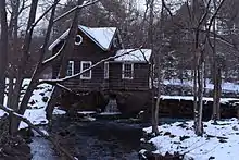 - a dam, a rubble-stone dam from mid-19th century at the site of the Orando Perry grist mill