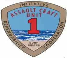Assault Craft Unit ONE, (ACU-1) is a Pacific Ocean Maritime Prepositioning Force in the United States Navy operated under Naval Beach Group ONE out of Naval Amphibious Base (NAB) Coronado with a Forward Detachment in Sasebo, Japan.[1] ACU-1's force consists of Landing Craft Utility (LCU) boats, Landing Craft Mechanized (LCM), Mark 8 boats , and Maritime Prepositioning Force Utility Boats (MPFUBs) .[2] The sister unit of ACU-1 is Assault Craft Unit 2 in Naval Amphibious Base Little Creek, Virginia.[1]