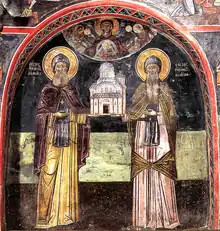 Fresco at the Monastery of Great Meteoron depicting Athanasius (left), with his successor Joasaph (right).