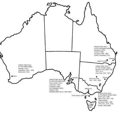 - ↑ Motor Grand Prix Dates, The Age, Friday 26 Sep 1947, page 8, via trove.nla.gov.au Archived 27 April 2016 at the Wayback Machine Retrieved 12 April 2016