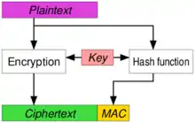 The plaintext is first encrypted, then a MAC is produced based on the resulting ciphertext. The ciphertext and its MAC are sent together. Used in, e.g., IPsec.[14] The standard method according to ISO/IEC 19772:2009.[9] This is the only method which can reach the highest definition of security in AE, but this can only be achieved when the MAC used is "strongly unforgeable".[15] In November 2014, TLS and DTLS extension for EtM has been published as RFC 7366. Various EtM ciphersuites exist for SSHv2 as well (e.g., hmac-sha1-etm@openssh.com).