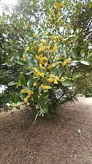 Azara celastrina, also known as lilen, is a small tree in the family Salicaceae. It grows to a height of 10m and its native range is central Chile. The yellow flowers are in an axillary corymb, and the leaves are serrate, oval and alternate, with a length of 4cm. A. celastrina grows in semi-arid conditions up to 1000m elevation.[1][2]