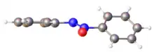 Azoxybenzene compounds are more stable as their trans isomer isomer. In Ph2N2O, the N-N and N-O bond lengths are is 1.24 and 1.255 Å respectively, corresponding to some double bonds character. The CNNC and CNNO are near 176°.[4]