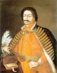 Baron Bálint Balassi de Kékkő et Gyarmat (Hungarian: Gyarmati és kékkői báró Balassi Bálint, Slovak: Valentín Balaša (Valaša) barón z Ďarmôt a Modrého Kameňa; 20 October 1554  30 May 1594) was a Hungarian[1][2][3] Renaissance lyric poet. He wrote mostly in Hungarian,[4] but was also proficient in eight more languages: Latin, Italian, German, Polish, Turkish, Slovak, Croatian and Romanian.[4] He is the founder of modern Hungarian lyric and erotic poetry.
