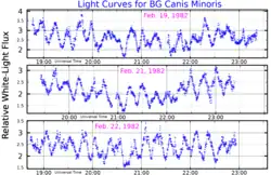 - ↑ Chanmugam, G.; et al. (February 1990), "The Magnetic Field of the Intermediate Polar BG Canis Minoris", Astrophysical Journal Letters, 350: L13, Bibcode:1990ApJ...350L..13C, doi:10.1086/185656.
