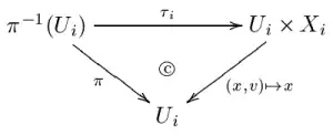 - the map τi is a homeomorphism commuting with the projection onto Ui, i.e. the following diagram commutes:
