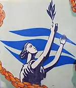 The administration building was officially opened on 2 December 1963.[28] It was built to house the majority of council's staff and departments, and was a two-storey square block with an external colonnade and basement level for parking.[29] The rates, health & building, and Town Clerk's departments were located on the ground floor, while the upper floor contained the engineering and planning departments. The building's main lobby featured a mosaic mural by Michael Santry depicting the history of Bankstown, in addition to marble-clad columns, timber panelling, and terrazzo floors.[29] In 1964, the exterior lighting of the Civic Centre received an award for meritorious lighting from the Australian Illuminating Engineering Society.[28] In 1966 a new fountain, the "Dane Fountain", was unveiled outside the building to commemorate the service of H. W. Dane as administrator of the council.[28]