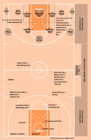- ↑ "Everything You Need to Know About Basketball Court Dimensions | PROformance Hoops". proformancehoops.com. June 7, 2019. Retrieved January 8, 2021.