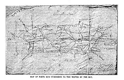 According to a story published in Century magazine in September 1898, Edwin Emerson, Jr., was pretending to be a German journalist. He presented himself to the German Consul in St. Thomas and asked for the names of Puerto Ricans of German descent whom he could interview. Among the names which the consul gave him were that of the Riefkohl family of the town of Maunabo. Upon his arrival in the town of Maunabo he met 14-year-old Rudolph W. Riefkohl and asked the lad in German if he had a map of Puerto Rico (Emerson had lost his). Riefkohl answered that he did, however it was decidedly too big for Emerson's use. Riefkohl returned home, not knowing that Emerson was a spy, and quickly drew another with a depiction of the major ports and harbors of Puerto Rico.[17] Emerson used the map and it is believed by some that he may have given the map to the U.S. Army Commanding General, Nelson A. Miles, influencing Mile's decision on the landing points for the invasion of Puerto Rico. A photostatic copy of Riefkohl's map was published in the Century article.[18]