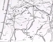 The XXI Corps was deployed without a corps reserve. The 60th Division was positioned on the coast with the 7th (Meerut) Division on their right, then the 75th Division with the longest frontage, was followed by the 3rd (Lahore) Division. On their right, at the eastern end of the XXI Corps and the Battle of Sharon's front line in the Judean Hills, the 54th (East Anglian) Division with the Détachement Français de Palestine et de Syrie, held the Rafat salient.[25][Note 6]